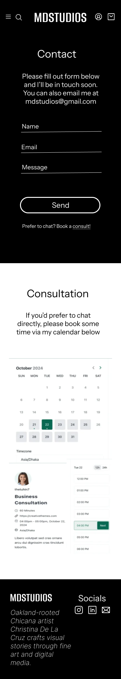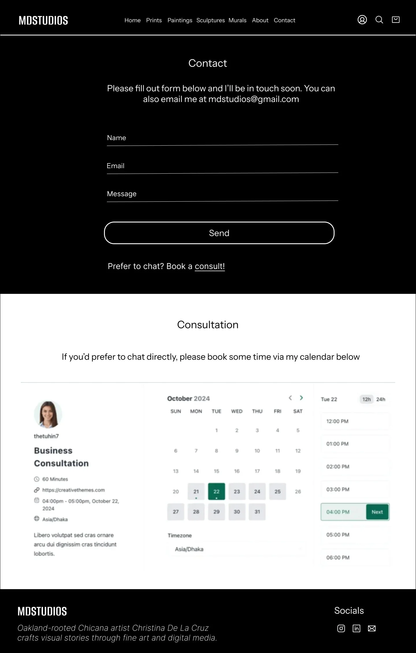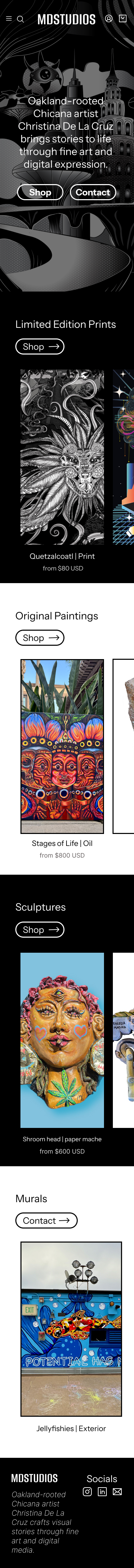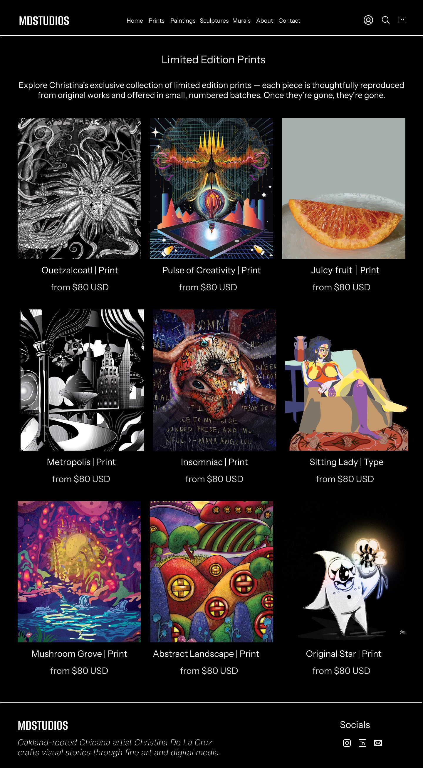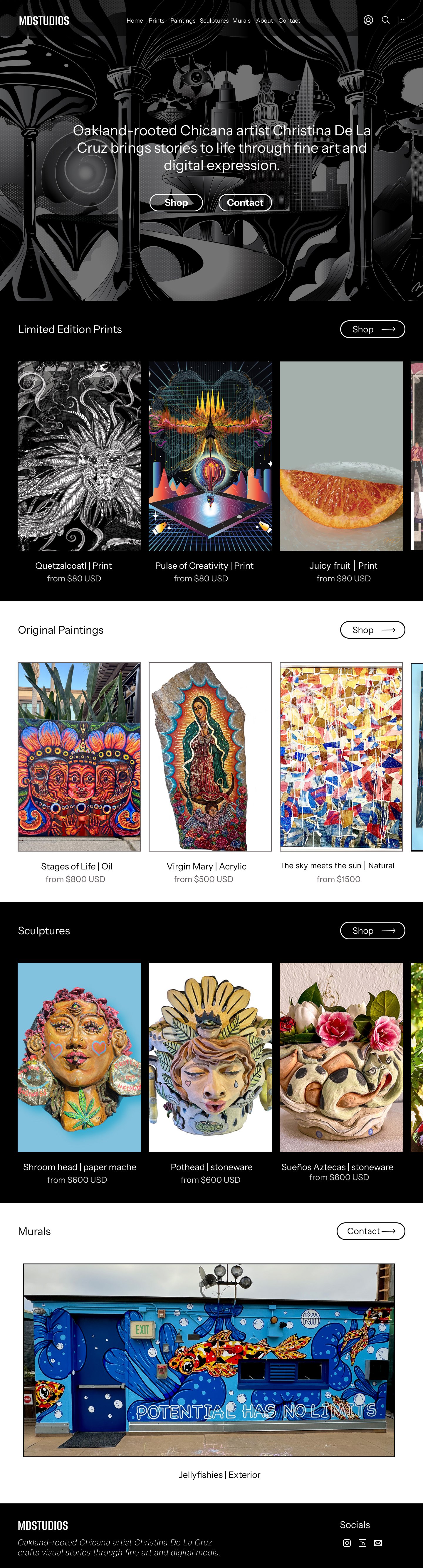Christina De La Cruz needed an online portfolio that not only showcased her interdisciplinary artwork but also made it easier for visitors to explore, purchase, and connect with her. Existing solutions lacked a tailored experience that reflected her artistic identity while providing clear pathways for inquiries and sales.