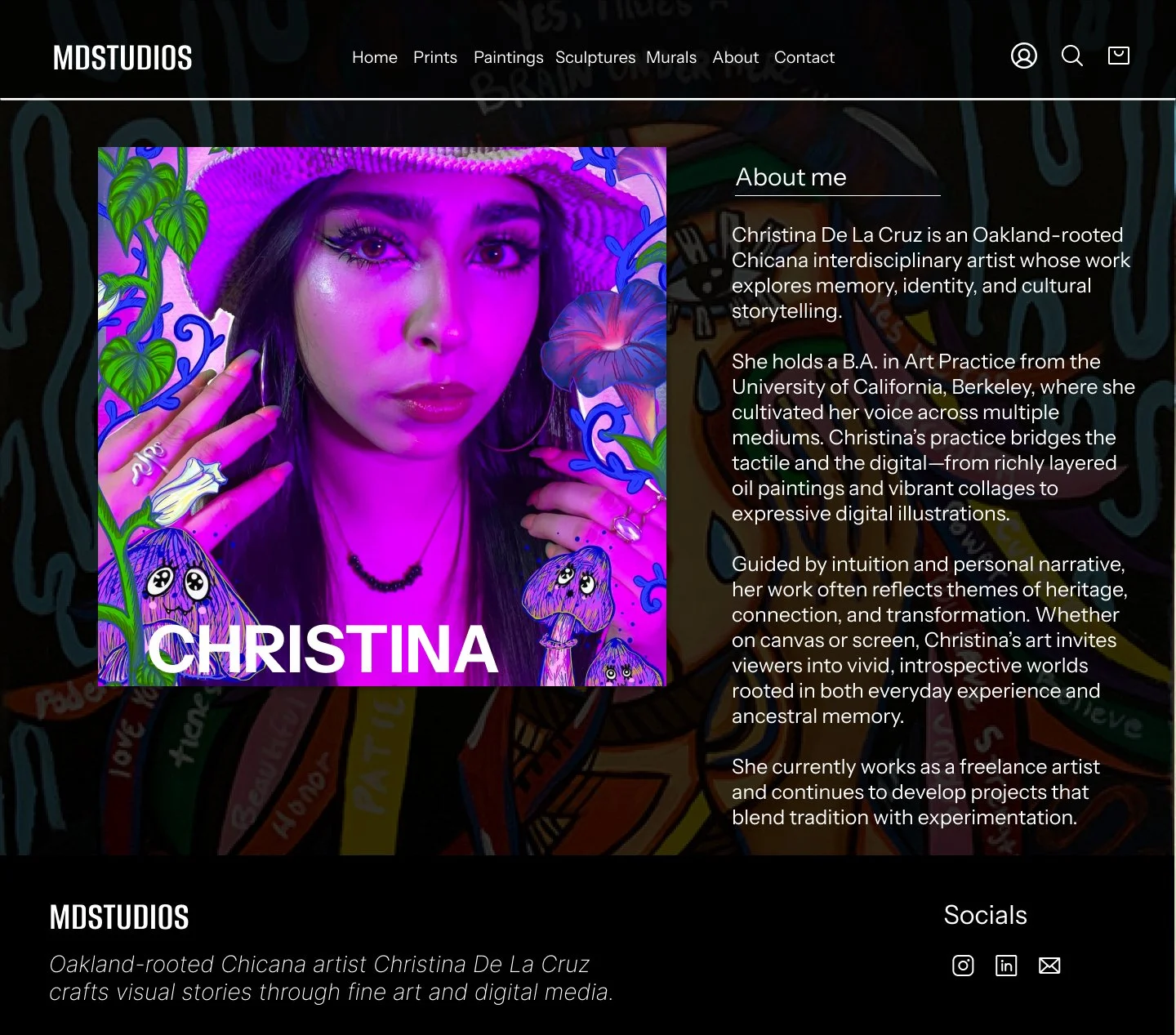 Artist Showcase Website – A personal website designed to present Christina De La Cruz’s interdisciplinary work, including fine art, digital pieces, and sculpture