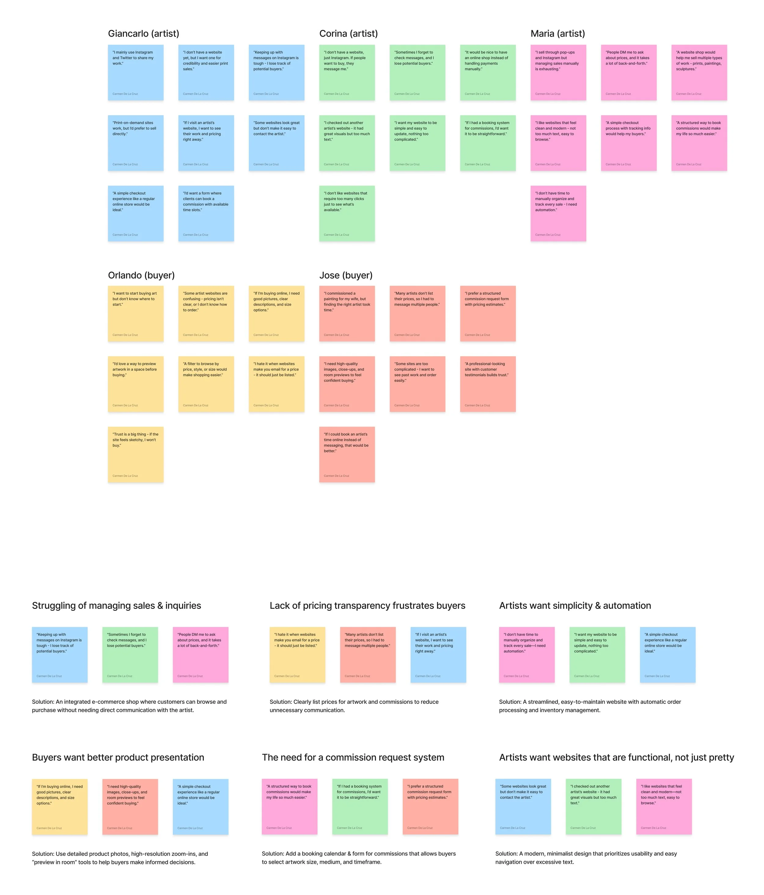 User Needs: Artists and buyers need a platform that simplifies sales, provides pricing transparency, and enables a smoother commission and purchasing process without manual back-and-forth communication.